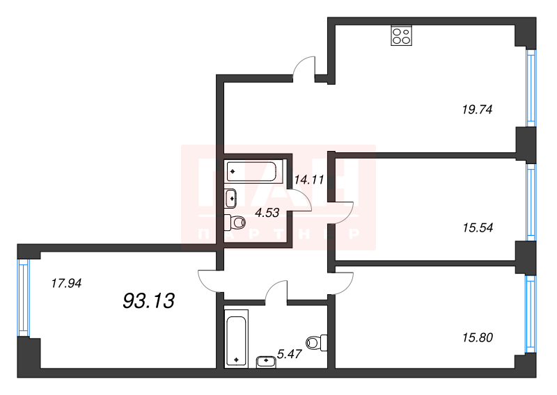 Вдоль линии реки все квартиры, начиная с первого этажа, видовые. Жителям нового жилого комплекса будут доступны эксклюзивные виды на Неву, парадный Петербург и историческую застройку Васильевского острова.