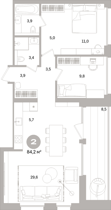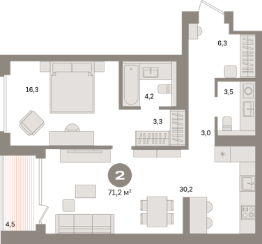 В квартале спроектировано более 65 типов планировочных решений. Это значит, что любой жизненный сценарий может быть здесь реализован: в двухкомнатных и трёхкомнатных квартирах комфортно будет семьям с детьми, а может и амбициозным динамичным синглам, сосредоточенным на карьере.