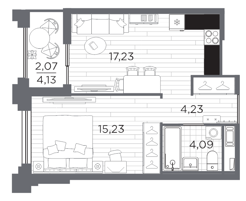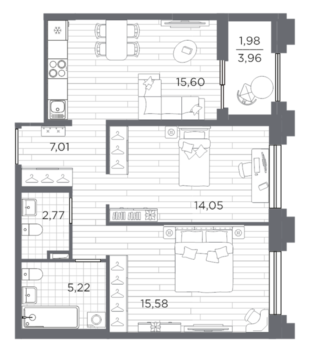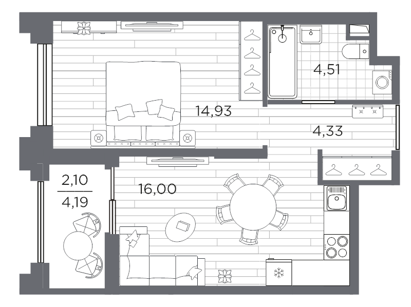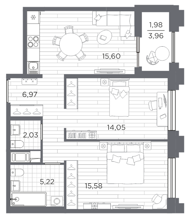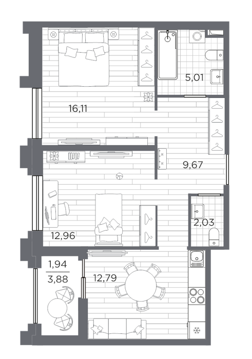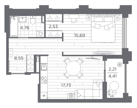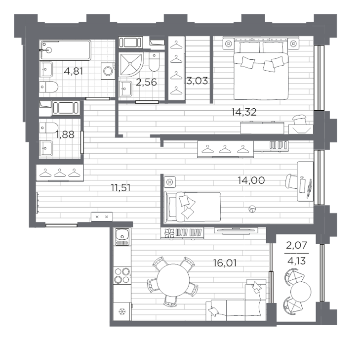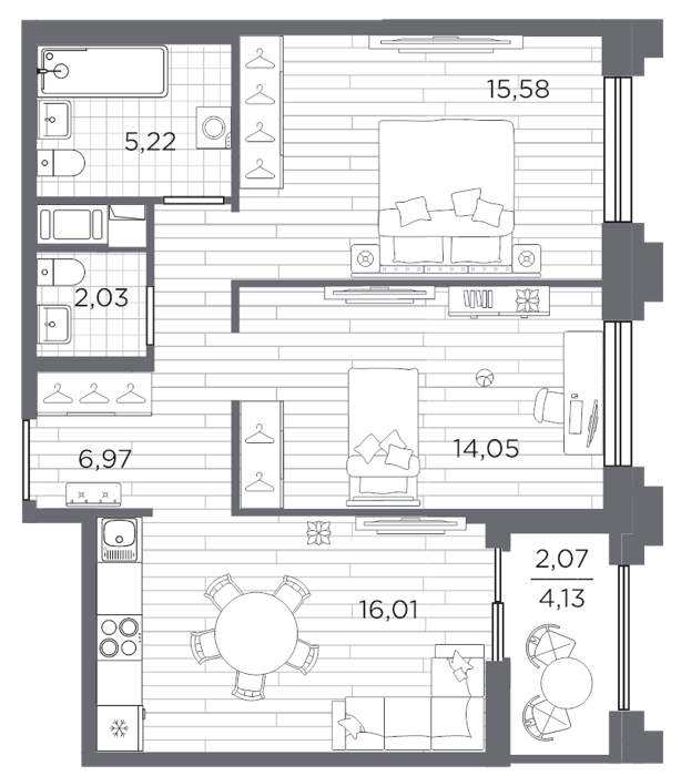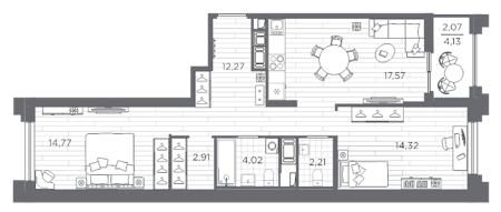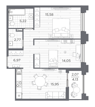 Квартиры передаются без отделки — это позволяет каждому владельцу реализовать индивидуальные дизайнерские решения.
